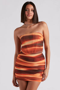 You'll be such a marvel in this marble bustier perfect for a girl's night! It features a strapless neckline, flexible boning inserts, side ruched seams, a curved cropped hem, and a trendy marble print pattern on a lined mesh fabric. Complete the look with the matching mini skirt and heels.