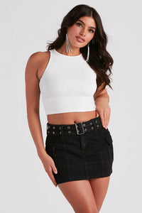 You'll be hitting up this basic tank top to create all of your insta-worthy 'fits! It features a sleeveless crew neck, fitted cropped hem, and is composed of stretchy rib knit fabric. Complete the look in a trendy mini skirt and heels.