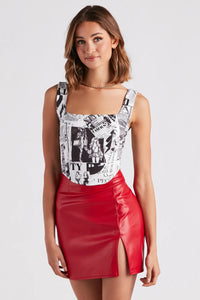 All Eyes On You Newspaper Print Corset Top