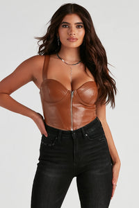 Make a statement in corset tops, cropped bustiers, and sleek bodysuits designed in standout fabrics like lace, mesh, satin, and chiffon. Prefer a little edge? Try faux leather, denim, or sheer-paneled styles with eye-catching details that keep your look fresh and modern.