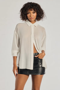 Get ready to rock the sheer ambition long sleeve collared blouse. With its mesh fabric, button-down front, and bishop sleeves, this oversized fit is your go-to for effortlessly chic vibes.