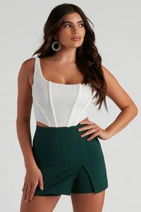Perfect for a glam night out or a fab look for a party, this satin crop bustier brings luxe vibes to your outfit! It features a sleeveless square neck, tank-style straps, front hidden hook and eye closures, and flexible boning inserts. Complete the look in chic heels.