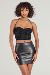 Chic Flirt Velvet Flocked Floral Halter Bustier Top