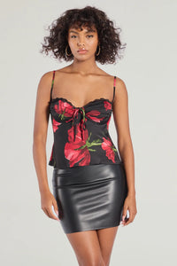 Good vibes come easy when you're in this crop bustier with the prettiest lace-up back and floral print!