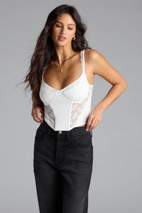 This lace knit bustier is sure to be in your forever lineup. Featuring a sweetheart neckline that flatters any figure, sheer lace panels for a touch of sensual allure, and a cropped hem to showcase your curves!