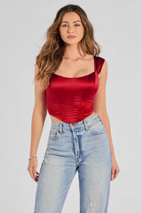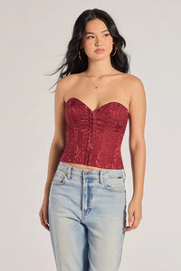 Sending mixed signals never looked this good. This strapless corset stuns with a heart-shaped cutout and a lace-up back—perfect for pairing with jeans or sleek fitted shorts for a night out!