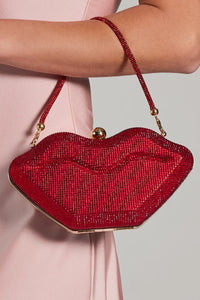 Add some sparkle and attitude to your outfit with this rhinestone lip clutch bag! Featuring rhinestone lips and a top push clasp closure, a detachable chain link rhinestone strap adds versatility, while the spacious interior allows for essentials. Complete the look in a dressy jumpsuit for a night on the town!