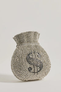Show off that bling with this dollar sign money clutch decorated with countless rhinestones and an embellished shoulder strap. Pair with a trench coat.