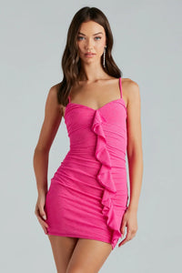 • Sparkly Arrival Glitter Ruffle Mini Dress