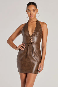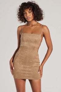 • Alluring Moment Faux Suede Lattice Cutout Mini Dress