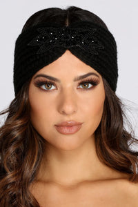 Stay cozy while keeping your 'fit cute in this adorable knit headband! It features a bow front design with allover rhinestone embellishment. Pair this glam accessory with your fave sweater and dark wash denim for that classic winter vibe.