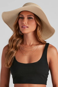 Head outdoors with a chic floppy hat. Keep your tresses on point with a dramatic floppy hat that features an all-over straw-like material and a traditional wide brim to shield eyes. Add a floppy hat to complete a vacay outfit or give your maxi dresses a diva-approved touch.