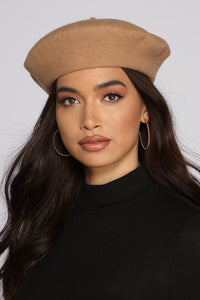 Look très chic with a classic beret! The beret features a classic beret-styled brim and composed of a wool knit material. Complete look with a black crop top.