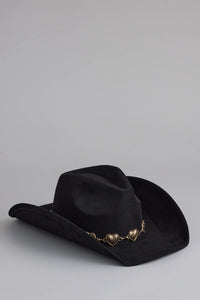 Look like a total western babe with this faux suede cowboy hat featuring a heart concho chain-link trim for a chic accent. Style for festivals, concerts, parties, and getting the perf shot for the gram.