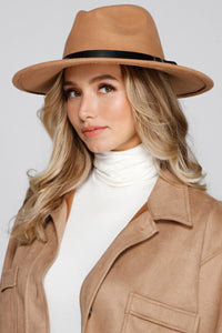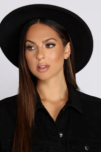 Channel a basic mood with a fab hat that adds that effortless touch to your look! The hat features a traditional Panama design, a short brim, a faux leather trim with a small buckle. The hat is composed of a faux wool material. Complete look with a bodysuit and high waist jeans.