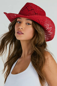 You're a country girl at heart, so this trendy cowboy hat is a summer staple! Made with a lightweight straw material, it features a structured top, a wide brim with curved sides, adjustable ties hidden on the inside for a tighter fit, and a diamond-shaped cutout design. Style with a crop top, denim shorts, and ankle booties for a cute and casual vibe.