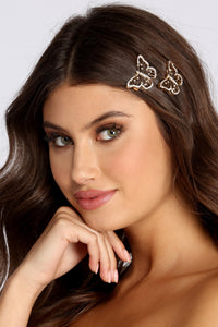 Come out of your cocoon baby-girl! This set includes two barrettes that have a ball snap closure, and showcase a beautiful butterfly structure that is embellished with rhinestones!Style Number/Barcode: 07006-0054