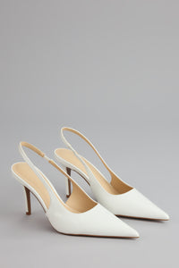 Sharp Finish Patent Slingback Pumps Sharp Finish Patent Slingback PumpsPolish your look with a sharp edge—these patent slingback pumps feature a pointed toe and stiletto heel that mean business (and pleasure). Perfect for date nights, chic office outfits, or weekend brunch. Fit & Features - 3.5" Stiletto heel