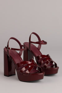 Glossed Up Patent Strappy Platform Heels Glossed Up Patent Strappy Platform HeelsShiny, strappy, and built to slay—these patent block heels give you the height without the hurt. With a platform sole and strappy design, they’re made for day or night soirees. Fit & Features - 4.5" Block heel