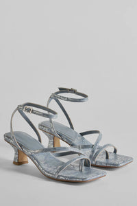 - Rhinestone toe and adjustable ankle strap, buckle closure