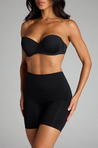 Create a smooth look with this high-waist shapewear thong for the perfect tummy control solution. This shapewear thong features an extra high-rise design made of an ultra-smooth material to enhance an hourglass silhouette for bodycon dresses, skirts, and pants. The thong-shaped silhouette creates a smooth surface with its discreet and seamless design. Pair it with a bodycon dress for a seamless look.