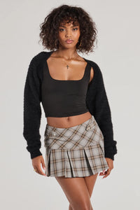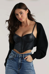 This bolero is the perfect piece for a chic, exclusive look! Designed on smooth ribbed knit fabric, it's a style you'll obsess over, featuring a removable plush faux fur neckline, fitted long sleeves with removable faux fur cuffs, an open front design, and an ultra-cropped hem.