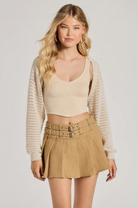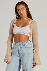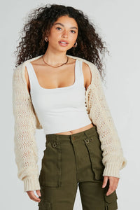 Layer on this knit bolero shrug to keep cozy during summer bonfires or nights! Featuring sheer slouchy long sleeves, an open front design to show off your outfit, and an ultra-cropped hem that keeps it trendy. Complete the look in cute sandals.
