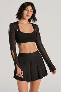 Layer on the chic elegance in this mesh bolero top designed to elevate your everyday looks to formal ensembles. The sheer long sleeves perfectly cover your arms with a touch of sophistication, while the cropped silhouette is the ideal layering piece that won't take away from a stunning formal or cocktail attire.