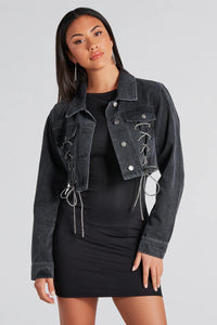 Outshine In Rhinestone Lace-Up Denim Jacket