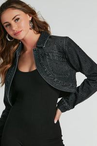 Sparkle Gal Rhinestone Crop Denim Jacket