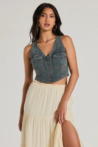 Definite Icon Zip Up Pocket Denim Vest