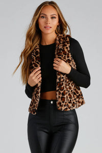 This faux fur vest will make you look oh-so-chic and fab! It features an open front with a relaxed fit and is composed of a plush faux fur fabric with a smooth lining and an all-over leopard print. Layer this vest over your fave mini dress and complete the look with sultry thigh-high boots.