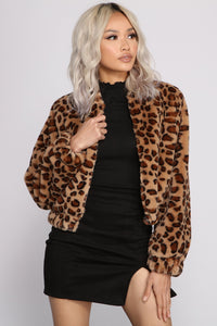 Layer on this adorable faux fur bomber jacket for a sassy and stylish look! It features a complete zip front, an overall relaxed fit, and an allover leopard print for a trendy vibe. Pair this jacket over a basic bodysuit for a fierce fashionista 'fit.