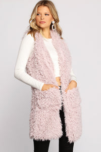 Even divas want to be cozy and cute on their off-duty days! Keep it chic in this faux fur jacket featuring long sleeves, a collared neckline, an open-front design, hidden side pockets, and a mid-length hem. Style with best-selling shoes to complete the look!