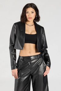 Layer on a chic vibe with this sleek faux leather cropped blazer. The cropped relaxed silhouette will give your 'fit that effortlessly cool look.