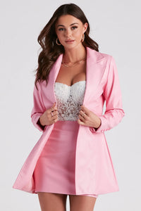 You'll look so fab in this sleek and trendy faux leather blazer! It features a lapel collar, shoulder pads for structure, long sleeves with button accents, a single button-front closure, faux front pockets, and a long-line fitted silhouette. The lined faux leather fabric offers a minimal amount of stretch. Complete the look with the matching skirt for a posh style!