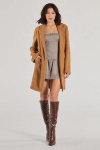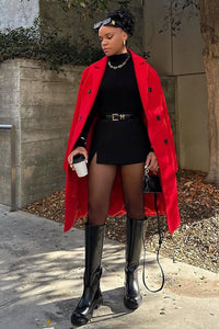 Layer on the chic style with this classic faux wool trench coat featuring a lapel collar, long sleeves, an open front, and a long-line hem with a relaxed fit. Style with a mini dress and knee-high boots for the perfect fall and winter vibe!