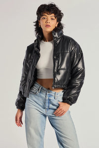 • Sleek And Cozy Faux Leather Puffer Jacket