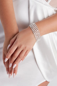 Luxe And Lavish Rhinestone Bracelet Luxe And Lavish Rhinestone BraceletThis sparkly embellished bracelet will bring the luxe and lavish vibes to your formal look! It features three rows of elegant baguette rhinestones outlined with mini rhinestones and includes an adjustable chain with a lobster clasp closure. Style with a sleek satin clutch. Fit & Features - Three rows of baguette rhinestones