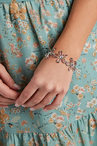 Retro Flower Statement Bracelet Retro Flower Statement BraceletAdd this retro flower bracelet to give your outfit the perfect finish! It features a large metal statement flower chain with center rhinestone accents. Complete the look in a floral sundress for an outdoor concert. Fit & Features - Large metal statement flower chain
