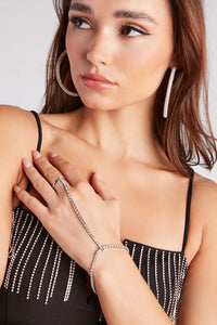 Oh-So-Luxe Rhinestone Hand Chain Bracelet Oh-So-Luxe Rhinestone Hand Chain BraceletYou'll feel oh-so-luxe with this sparkling rhinestone hand chain bracelet! It features a bracelet with a single row of rhinestones, a center baguette-shaped rhinestone, and a row of rhinestones that lead to a sleek metal ring with a matching baguette rhinestone. Style this hand chain with an envelope clutch. Fit & Features - Dainty bracelet, single row of rhinestones