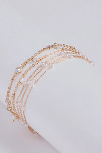- Single bracelet with three-row dainty paperclip chain-link design, faux pearl beading