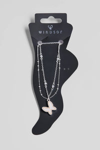 Flirt and flutter! This charming three-pack anklet set features two dainty anklets and one anklet with rhinestone trim and a butterfly charm. Each has a lobster clasp closure. Complete the look in a whimsical skater dress.