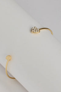 A bangle bracelet adorned with delicate hearts with one showcasing mini rhinestones for a hint of glam.