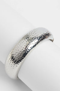 A statement bangle bracelet that will bring out a confident aura! It features a unique hammered design and an easy pull-apart closure. Pair with a cocktail dress and heels.