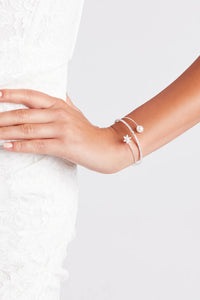 Dainty Luxe Rhinestone And Pearl Bracelet Dainty Luxe Rhinestone And Pearl BraceletBring the sparkle to your dressy 'fits with this dainty luxe embellished bracelet. It features a layered flexible wrap-around design with mini rhinestones, a rhinestone flower-shaped accent, and a faux pearl detail. Style with a metallic clutch. Fit & Features - Layered flexible wrap-around design, open-ended