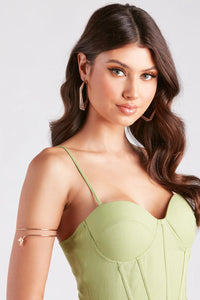 Fierce Glamour Rhinestone Snake Arm Cuff Fierce Glamour Rhinestone Snake Arm CuffThis trendy rhinestone arm cuff will give off total fierce glam vibes! It features a wrap-around design with a thin snake shape, all-over rhinestone embellishments, gemstone-embellished eyes, and a short hanging tail accent. Style with a ring set. Fit & Features - Wrap-around design