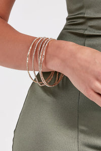 Glam Spark Rhinestone Bangle Bracelet Set Glam Spark Rhinestone Bangle Bracelet SetShow off a glamorous spark with this glitzy set of rhinestone bangles! The set features five thin bangle bracelets with all-over rhinestone embellishments and a stretchy design. Style with a sleek envelope clutch. Fit & Features - Set of five thin bangle bracelets
