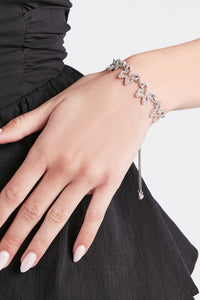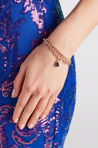 Fluttery And Free Rhinestone Butterfly Bracelet Fluttery And Free Rhinestone Butterfly BraceletTake your formal wear to new heights with this glam bracelet! Featuring butterfly-shaped charms with mini rhinestones, a dainty metal string, and an adjustable slider bead design for a customizable fit. Complete the look in a tulle party dress for a wedding! Fit & Features - Butterfly shaped charms