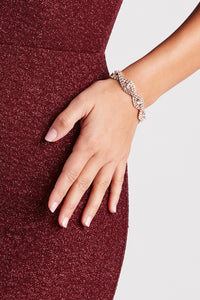Fancy Affair Rhinestone Leaf Bracelet Fancy Affair Rhinestone Leaf BraceletThis elegant rhinestone leaf bracelet was made for your next fancy affair! It features a dainty double-row design of mini rhinestone embellishments with leaf-shaped rhinestone accents. Style with a sleek clutch. Fit & Features - Double-row design, mini rhinestones